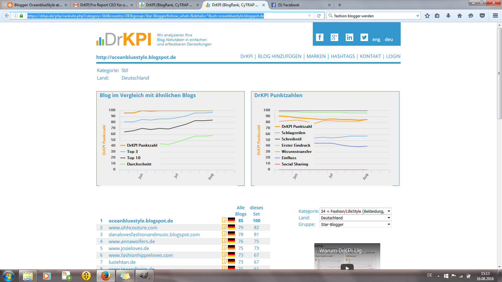 Denn Masse ist nicht für jedes Unternehmen Klasse, will es nicht nur nach dem Prinzip Gießkanne vorgehen. Welchen Wert Leserbindung hat, beschreibt der DrKPi Blog sehr fakten-und detailgenau. Mit anderen Ü30-Bloggern belegt “Oceanblue Style at Manderley” regelmäßig die Top 10.